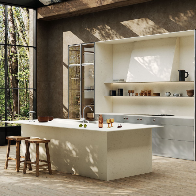 Velluto est une finition satinée pleine masse, adaptée aussi bien aux applications intérieures qu’extérieures, aux sols et aux façades ventilées, mais également aux plans de travail, comptoirs de cuisine, etc. Sa texture est très polyvalente et douce au toucher.