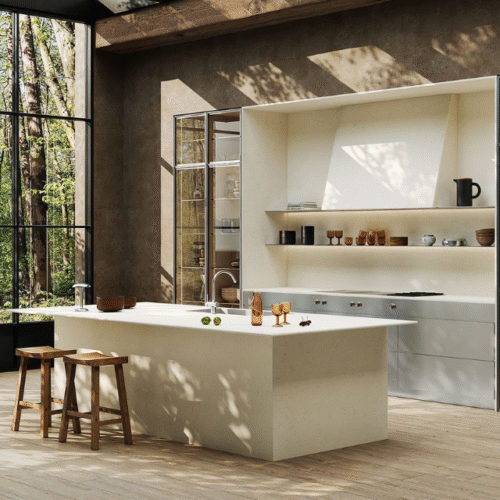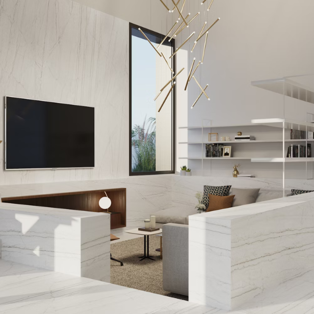 A light cream-toned base features fine, pale veins flowing through its marbled surface, forming a delicate, captivating neural network. These veins move harmoniously in the same direction, adding depth, elegance, and subtle movement. The design creates a refined, timeless aesthetic that enhances both classic and contemporary spaces with understated sophistication.