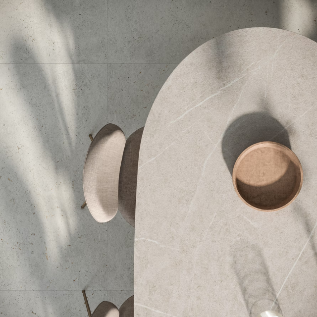 A reinterpretation of the visual richness of Campaspero stone and its beautiful irregularities in a unique hyper-realistic pattern that combines an irregular beige background crossed by grey and cream veins with subtle details and fossil inlays… The beauty of this classic limestone recoded with the strength of Dekton.
