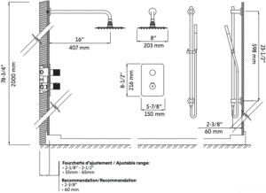 Ce robinet de douche allie design moderne et commodité fonctionnelle dans un ensemble complet. La douchette ajustable permet une utilisation facile et un accès pratique. L’entrée d’eau intégrée à la barre rend l’installation plus épurée et sans encombrement. La cartouche en céramique et le corps en laiton massif garantissent une grande durabilité.